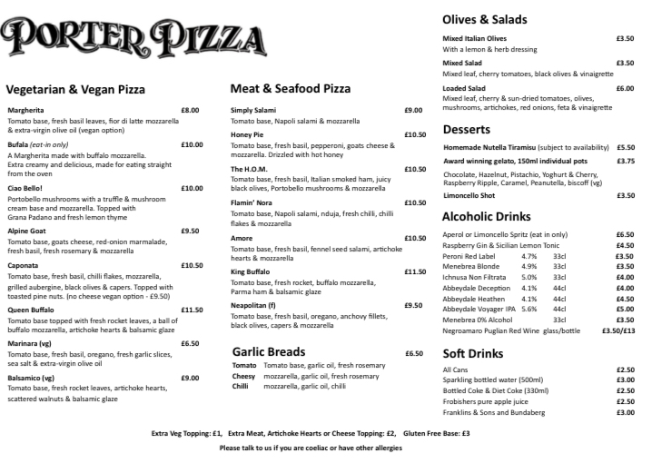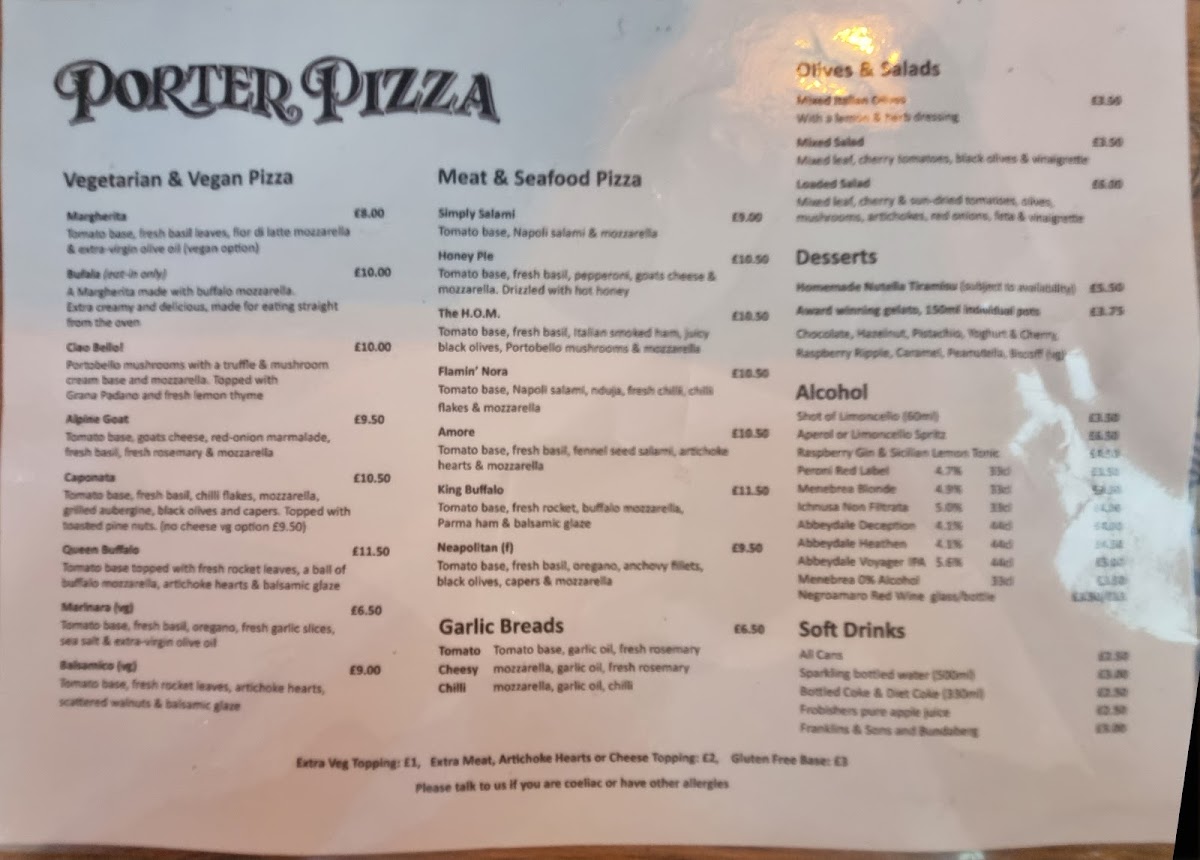 Welcome to The Porter Pizza Company, a hidden gem located at 394-396 Sharrow Vale Rd, Sheffield. This vibrant eatery serves up a delightful array of handcrafted pizzas, acclaimed for their seasonal toppings and innovative flavors. Diners rave about the Student Margherita and various garlic bread options, including Tomato and Chilli. The warm, friendly atmosphere is matched only by the welcoming staff who ensure every visit is enjoyable.